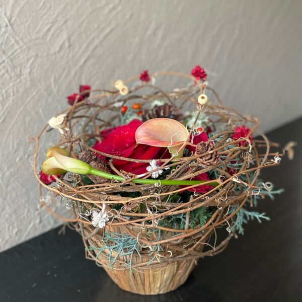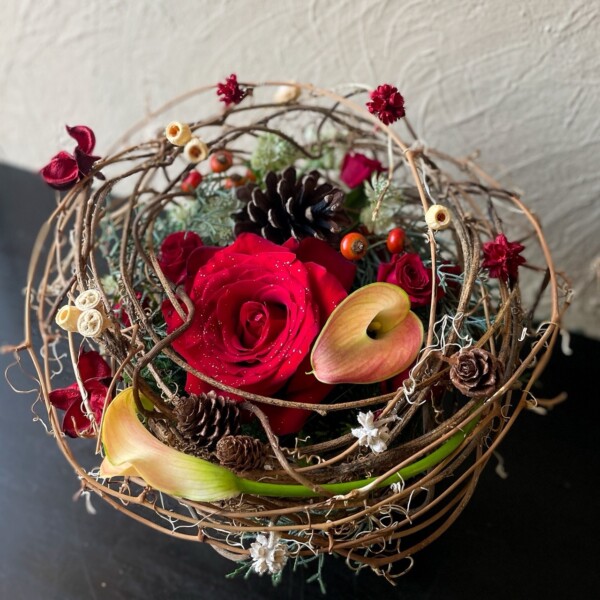 巻かれたものをテーマに作られるお花の世界を楽しんでいただけるデザインです。