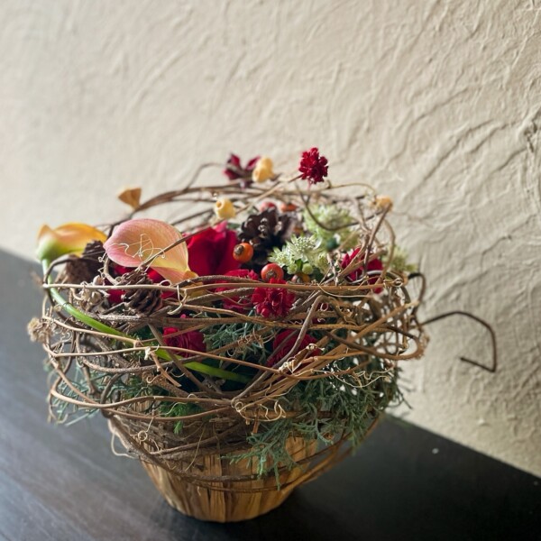※写真は試作作品の為、レッスン当日の花は、レッスン日により若干異なる場合があります。ご了承下さい。