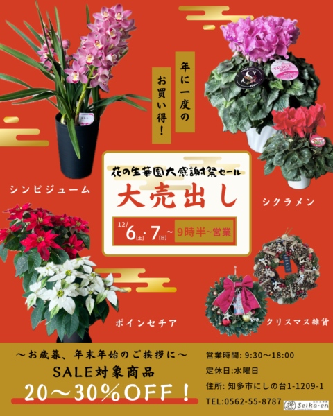 クリスマスリースやオーナメントグッズもすべて通常価格より20%から30%OFFで販売です。