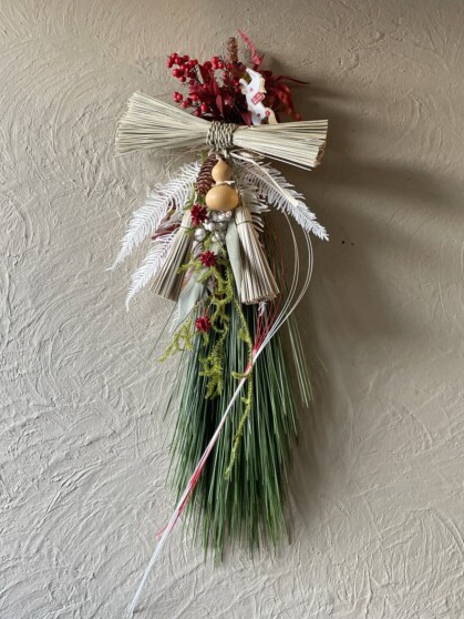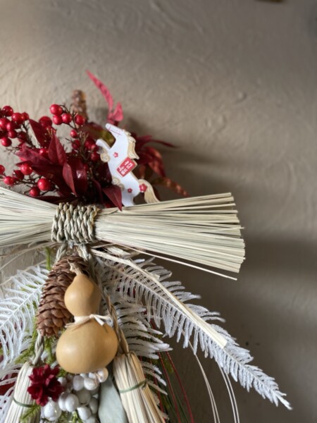 今年は「難を転じる」南天を高々と。怪我や災いのない一年になりますように、という願いを込めました。