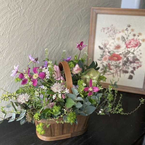 冬から春への移り変わりを感じるバスケットアレンジメントです♪