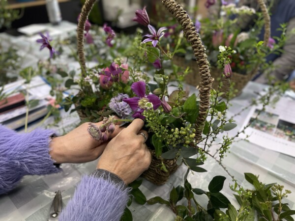 ひとつのメインになる花が主張するのではなくそれぞれがお互いを引き立てるように交じりあうように生けていきます。