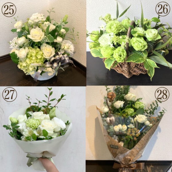 そんな時お花のご注文時に参考になるようなアレンジメント、花束をカラー別にまとめてみました。