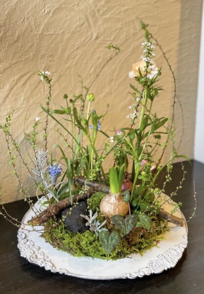まるで『冬から春へ』芽吹きを感じながら理想的な自然を切り取ったかのように制作する球根を用いたアレンジメントのスペシャルレッスン開催。