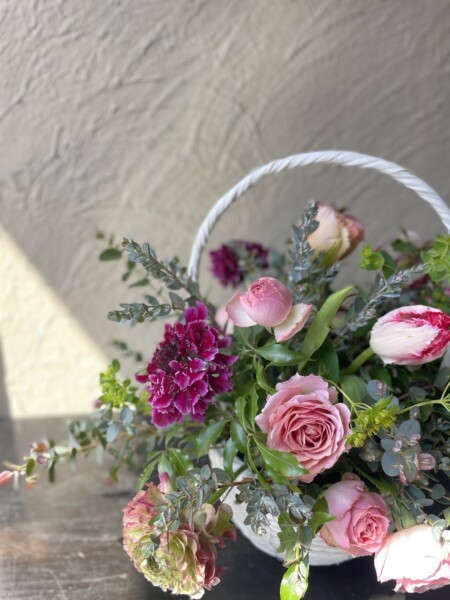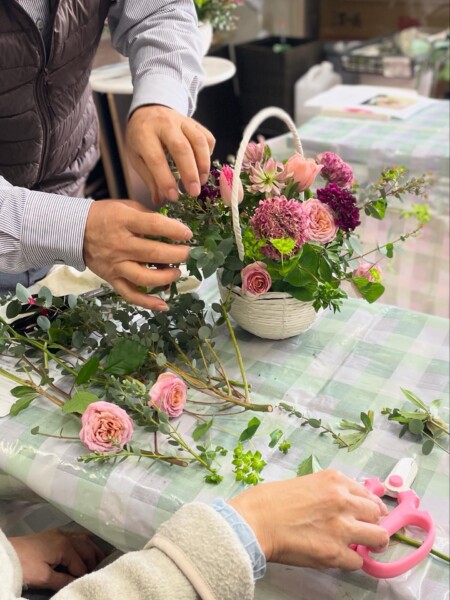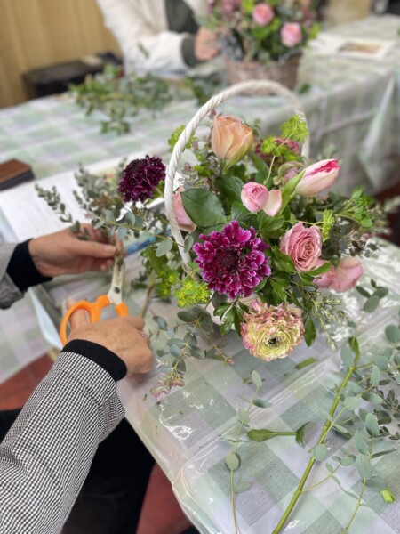 伸びやかに、春を感じられるアレンジメントが出来上がりましたね。写真を撮りながらみなさんかわいいなぁとしみじみ。